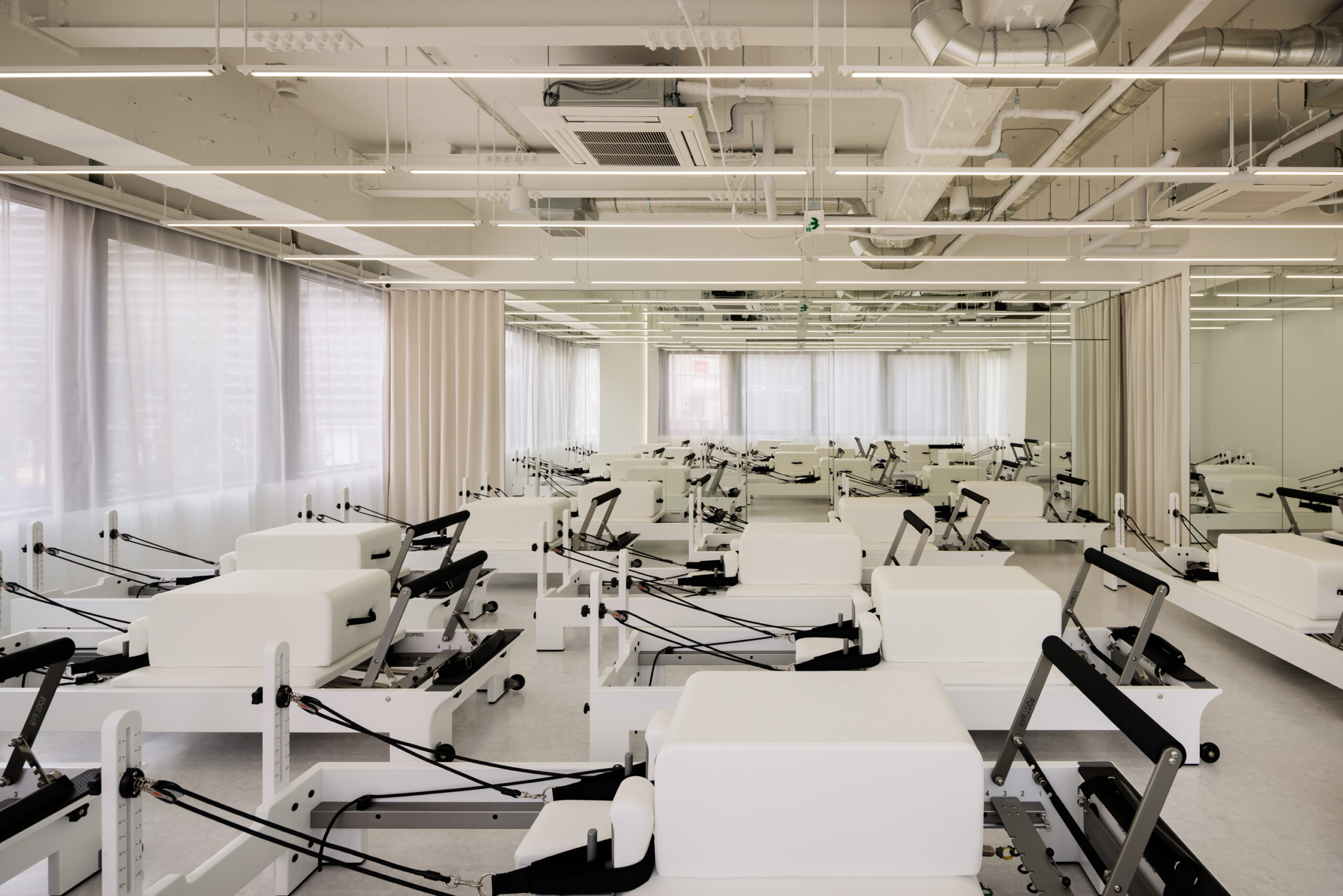 the SILK横浜店は、天気のいい日は日の光が差し込む大きな窓に囲まれた開放的なスタジオです。