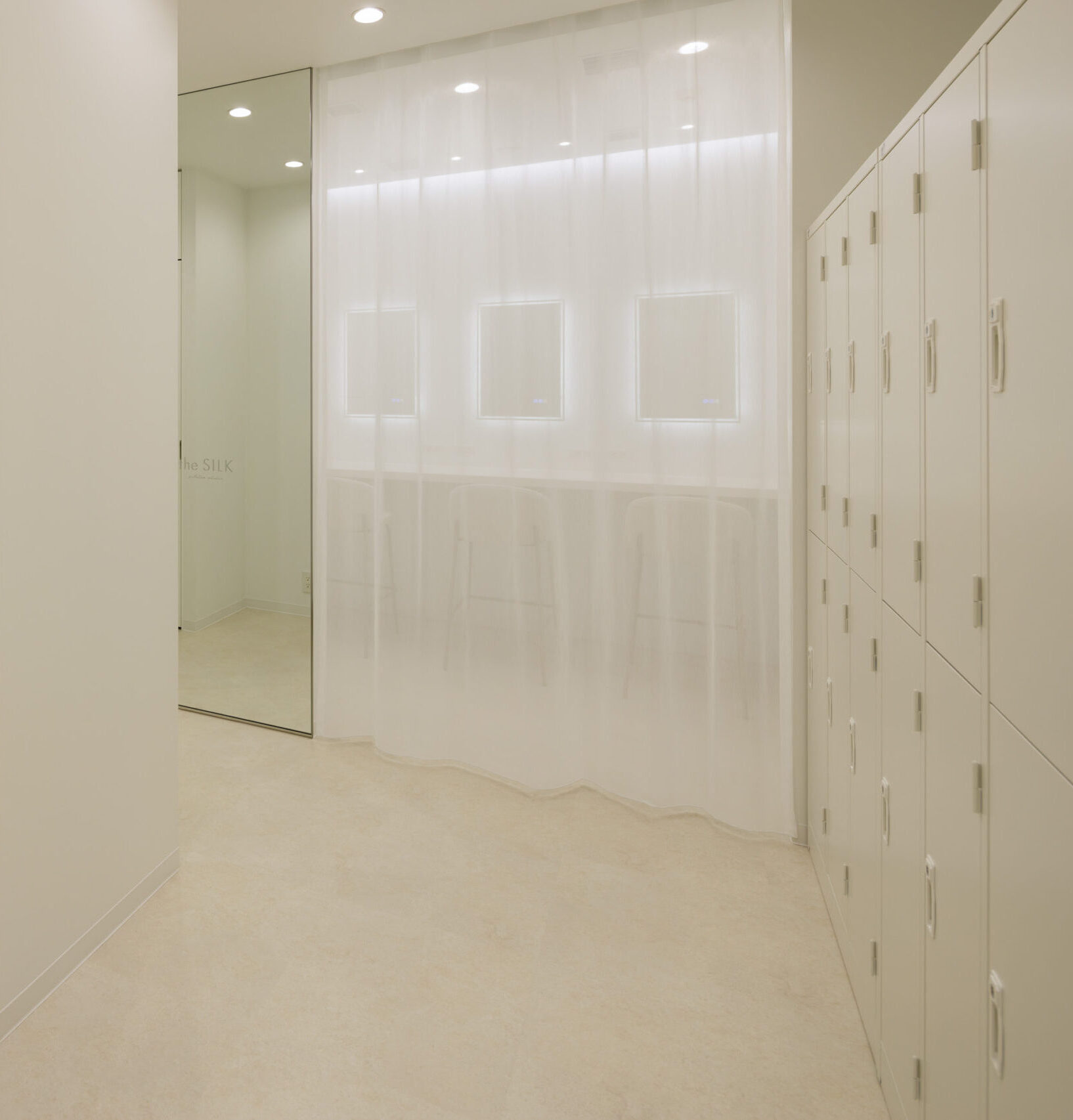 the SILK横浜店のメイクアップミラー付きパウダールームでは、白を基調とした清潔感のある空間で、心地よい時間をお過ごしいただけます。