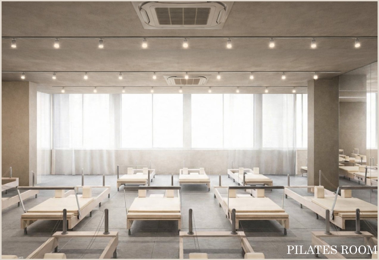 グループレッスンでは、音楽のリズムに合わせて楽しくエクササイズできるよう工夫されており、ピラティスが初めての方でも安心してご参加いただけます。