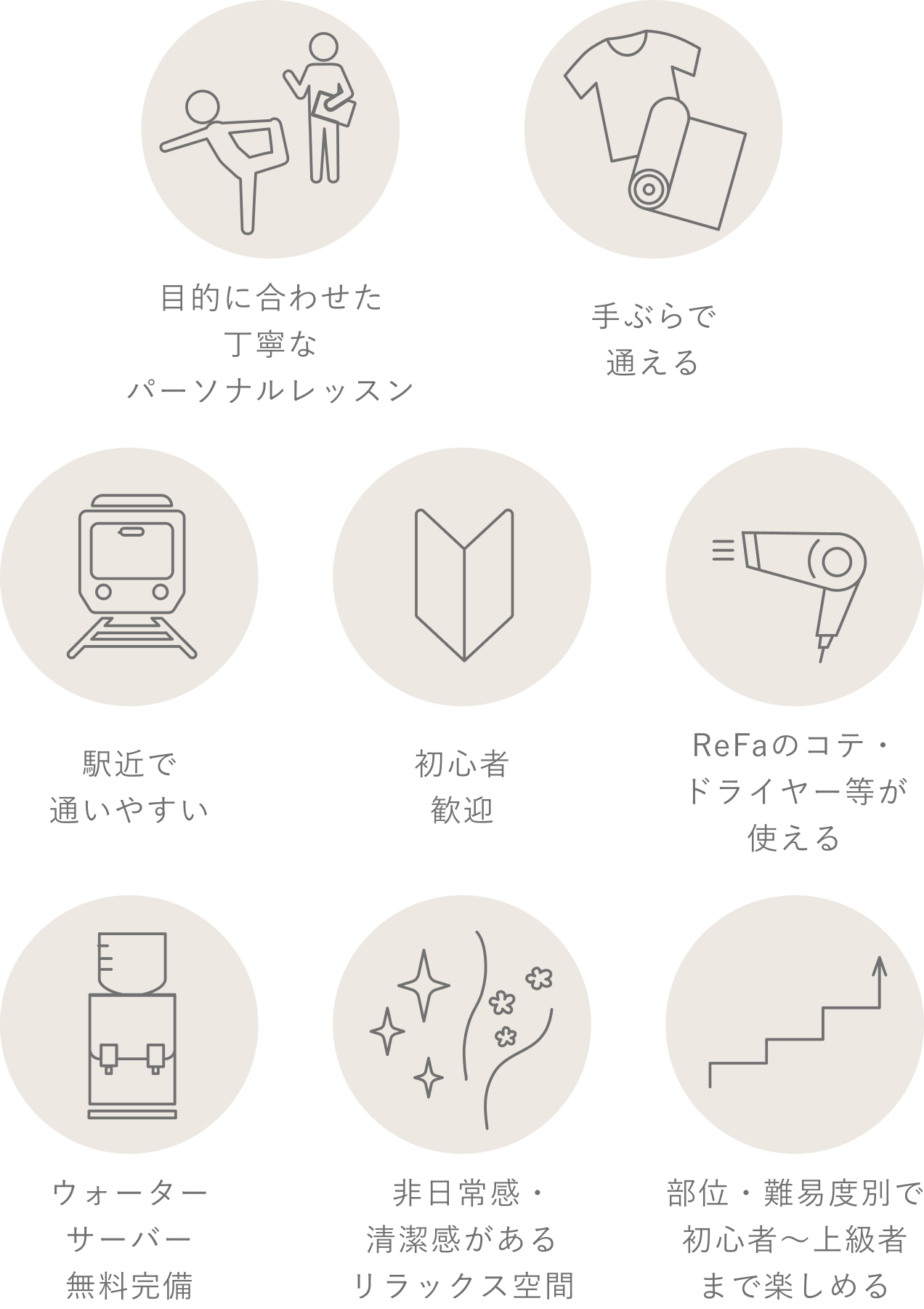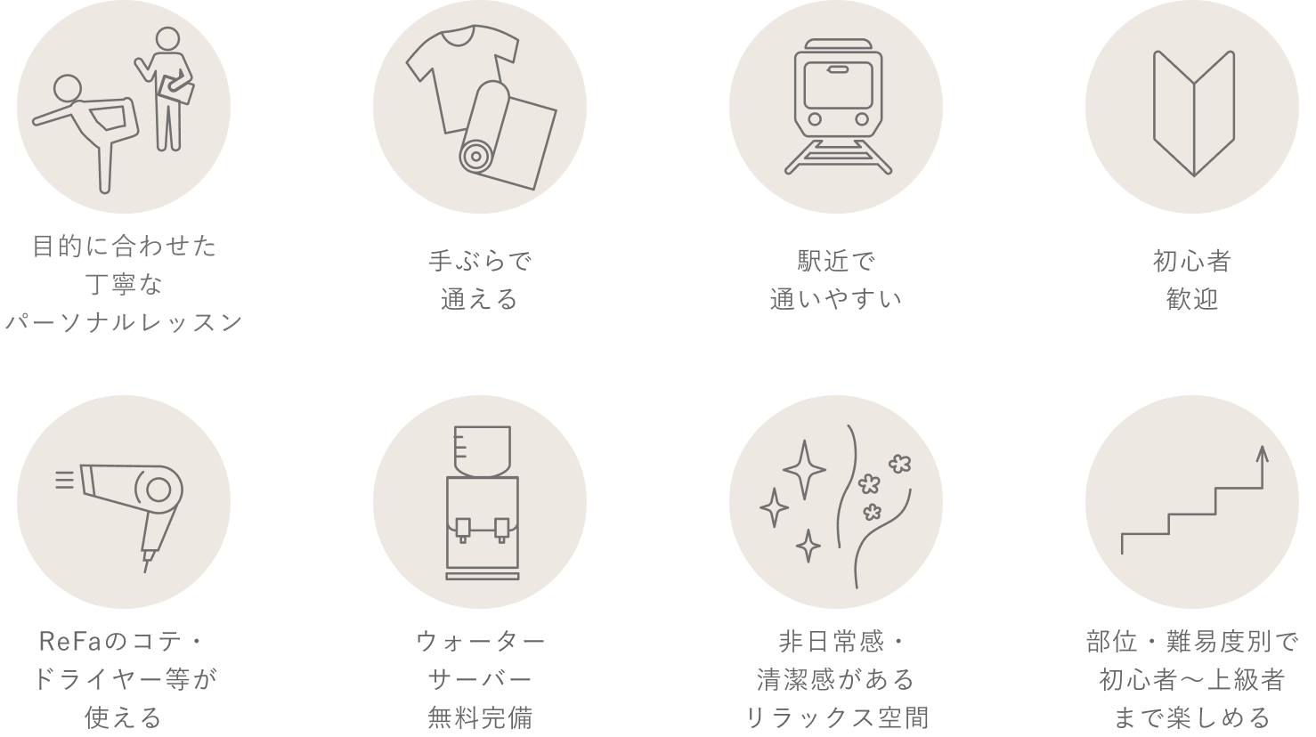 気持ち良い伸びとちょっとキツいエクササイズのミックスで毎回とってもすっきり整った感覚を味わえます。