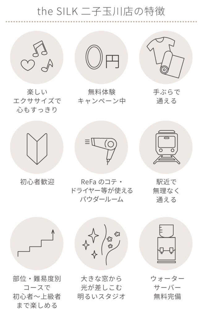 the SILK二子玉川店は、二子玉川駅より徒歩5分にある女性専用マシンピラティススタジオです。
