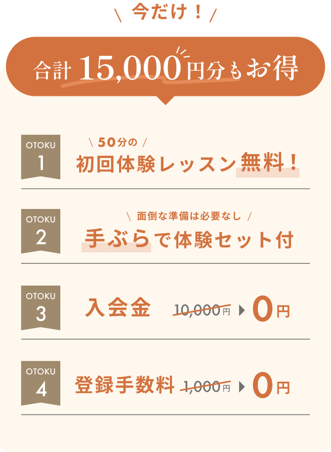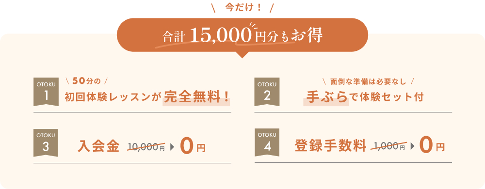 ※特典3,4は当日ご入会・3ヶ月継続の方限定です(4ヶ月目よりプラン変更が可能)